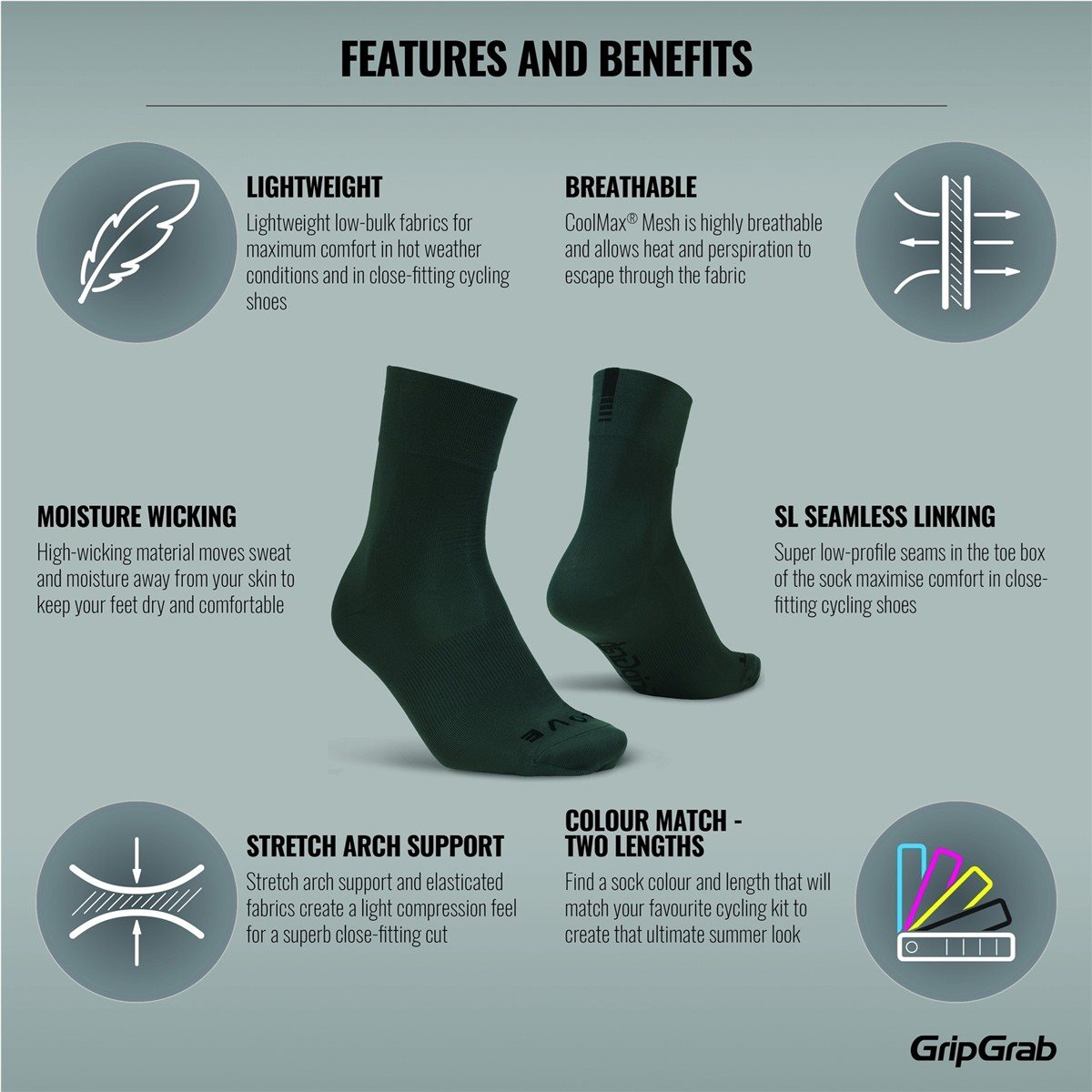 Startside / Sykkelklær & Utstyr / Sykkelsokker / Gripgrab Sykkelstrømper Lightweight Sl Green