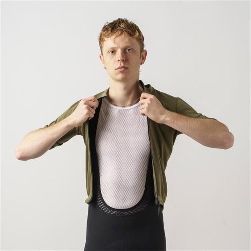 I denne moderne tolkningen av en klassisk sykkeltrøye kombineres de luktfrie og varmeregulerende egenskapene til merinoull (20 %) med den hurtigtørkende og fuktavledende evnen til syntetfiber (80 %).