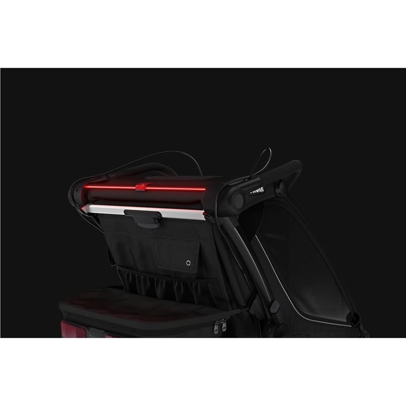 Som vanlig har Thule prioritert sikkerhetsfunksjonene, og denne 3. generasjonen har fått en ny design på sykkelarmen som nå festes med et lite klikk, noe som både forenkler festingen og gir ytterligere sikkerhet ved at den integrerte låsemekanismen sikrer at den festes korrekt hver gang. De kraftige skivebremsene gjør det mulig å stoppe i et øyeblikk når du løper, og den innebygde LED-belysningen sørger for at du synes i alle typer vær- og lysforhold.